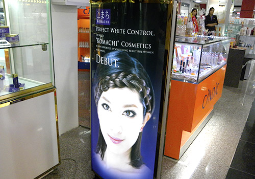 現地からの要請で、メイドインジャパンのブランド化粧品「こまち」を現地マーケティングの意味もあって自社で百貨店にて展開しています。
